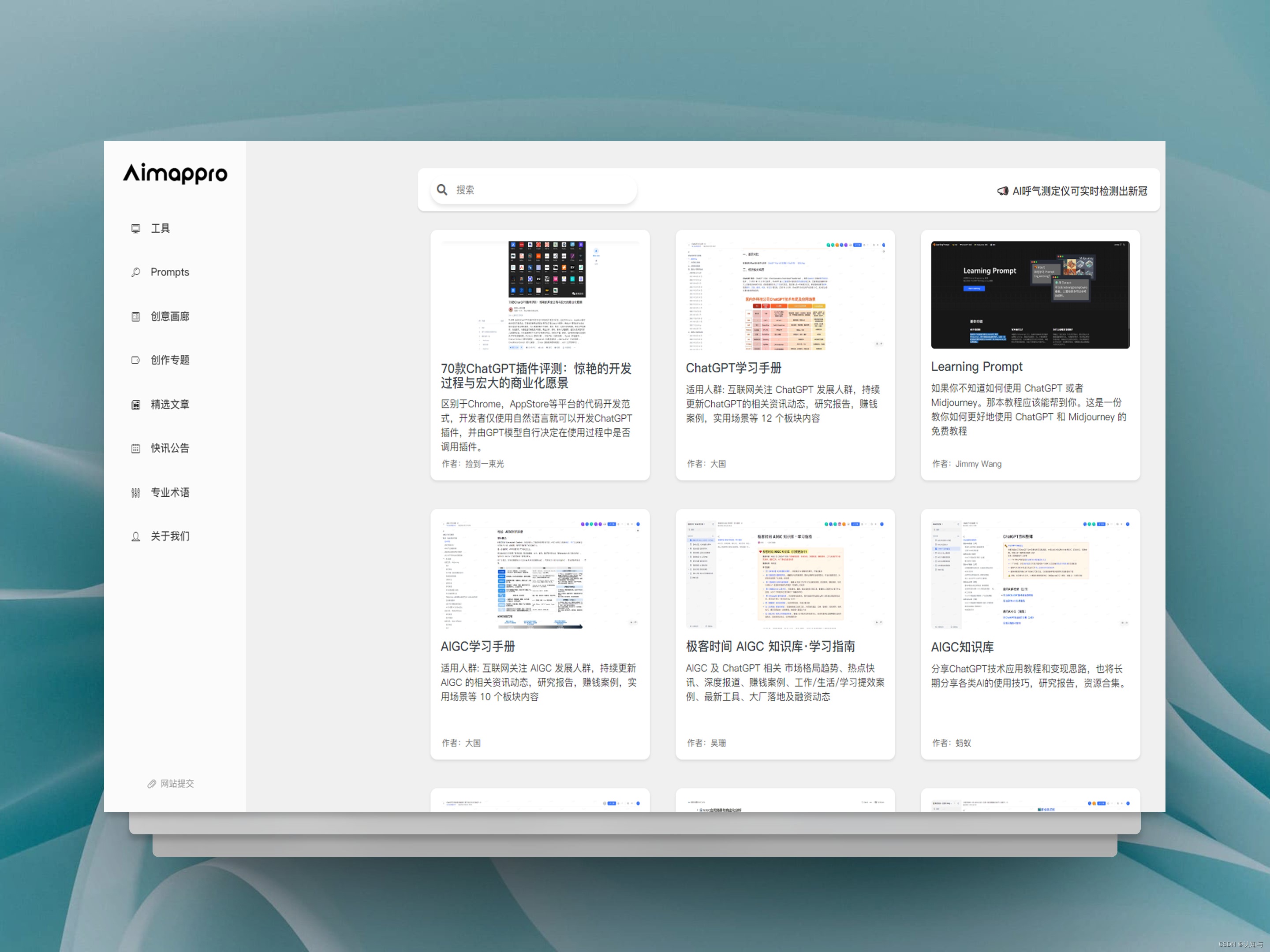 AiMapPro是一款基于ChatGPT构建的AI导航工具, 旨在降低使用人工智能技术所需的门槛, 促进人工智能技术的普及与应用. 无论您是刚开始接触人工智能的新手, 还是对人工智能充满兴趣的爱好者, 或者是希望深入了解各类AI工具的专业人士, 都可以在AiMapPro中找到所需的学习资源.
