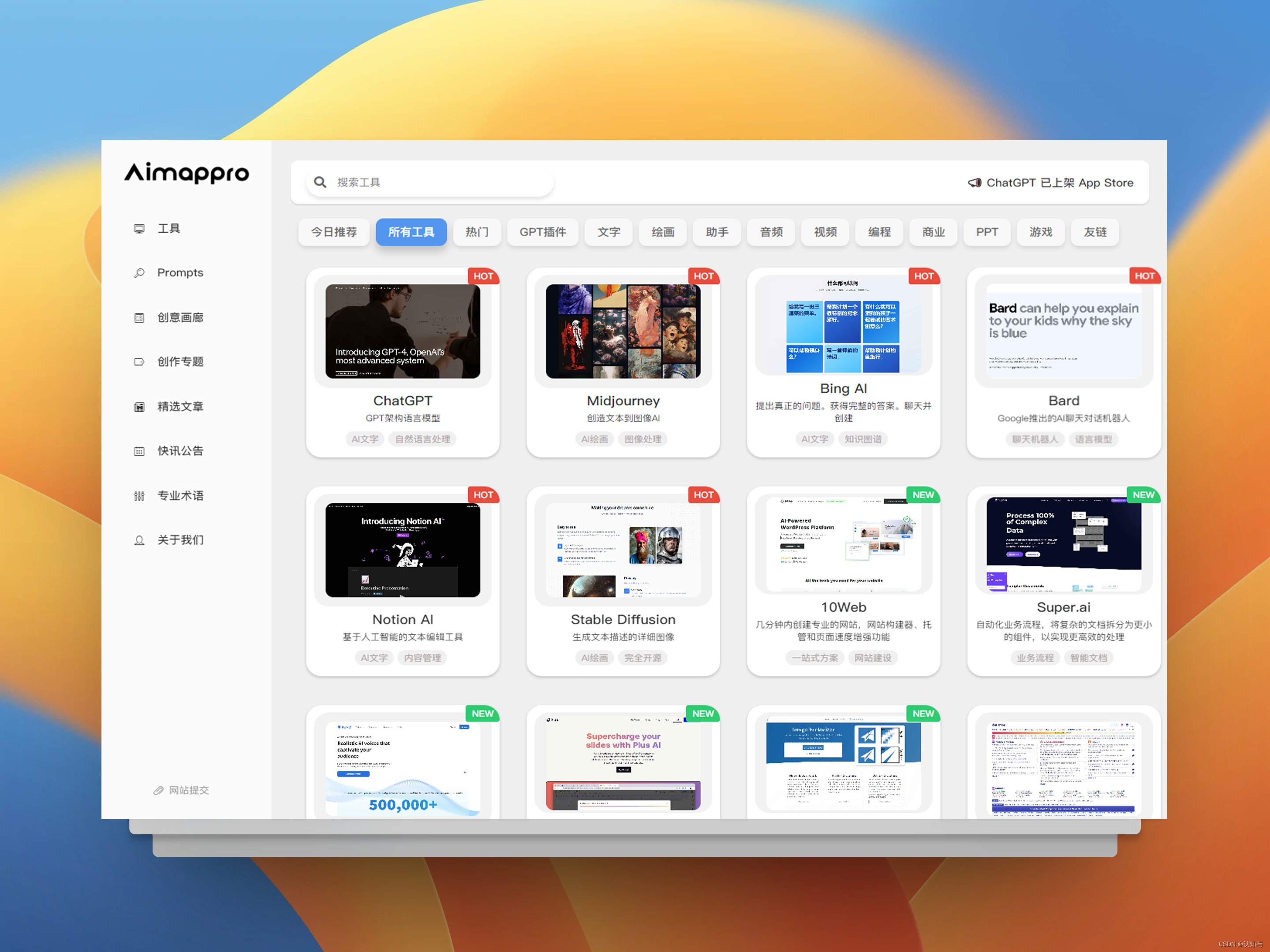 AI工具库:AiMapPro收集了当前最全面的600多种AI工具,并持续补充新的功能与服务以满足用户的需求,在广袤的人工智能领域为他们提供便捷的选择。