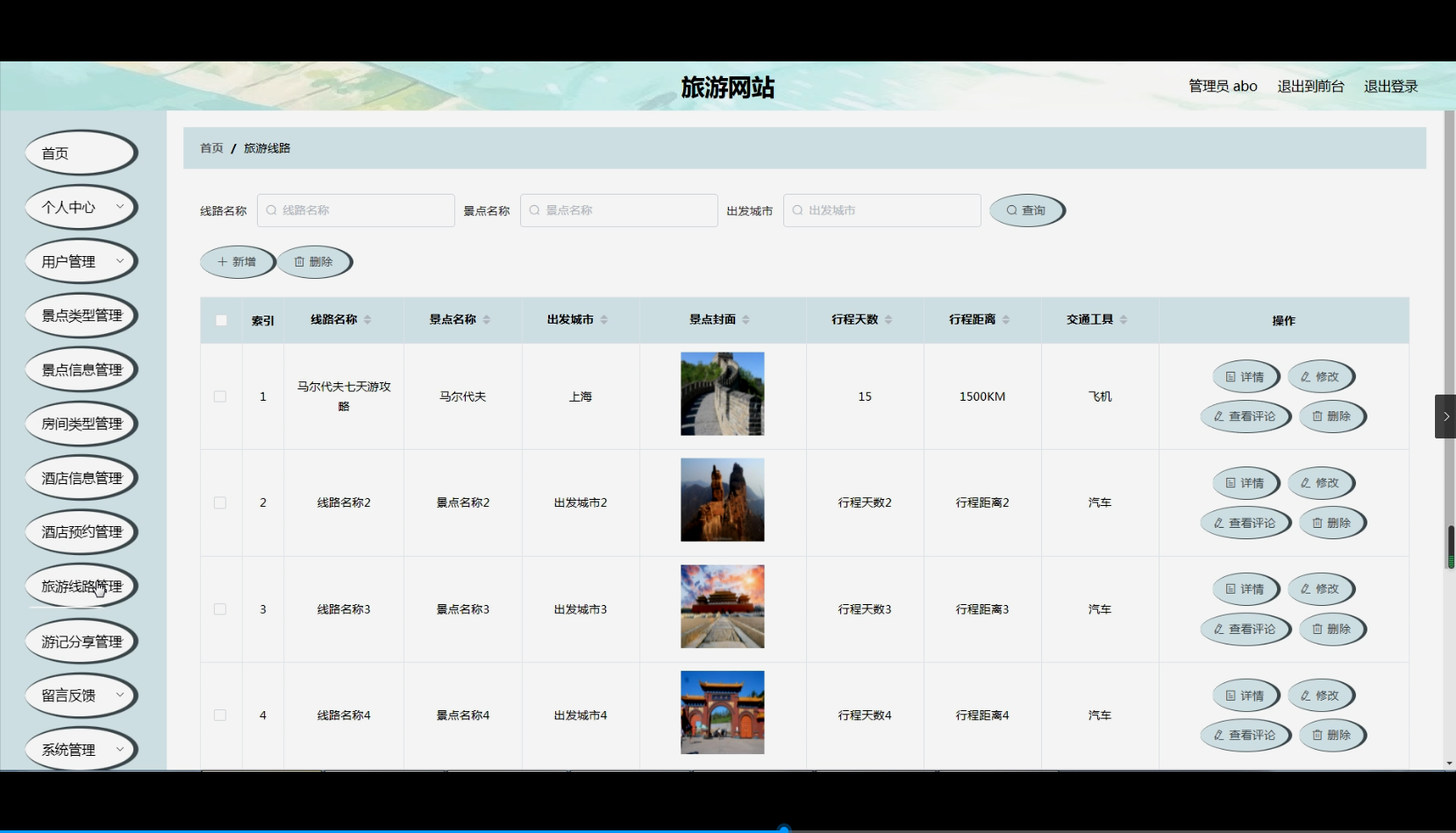 - 套餐与路线功能 :对旅游套餐包含的服务项目(如交通方式选择、住宿安排等)及路线规划系统进行全面优化设计。