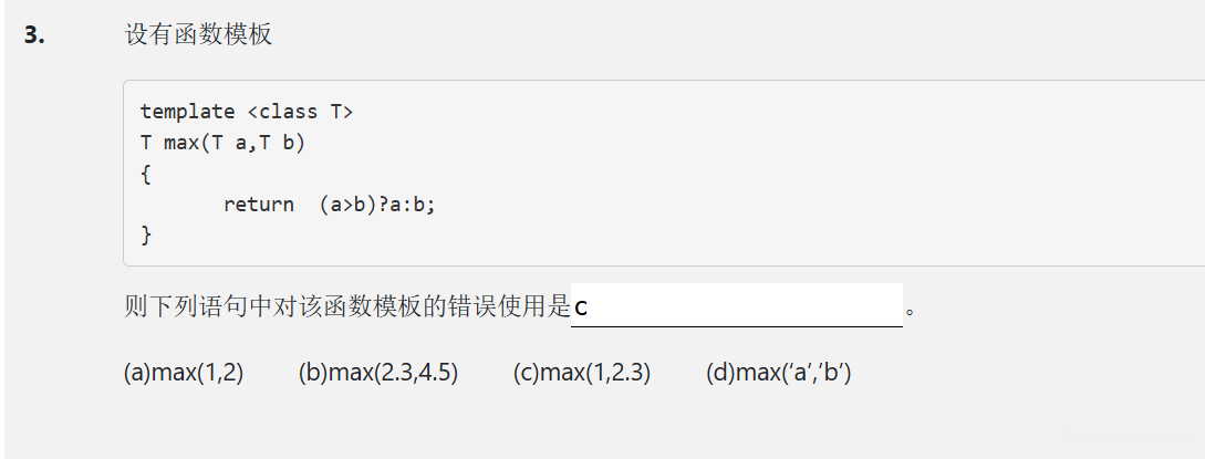 模板对类型的参数化提供了很好的支持,因此 【正确答案: b 】