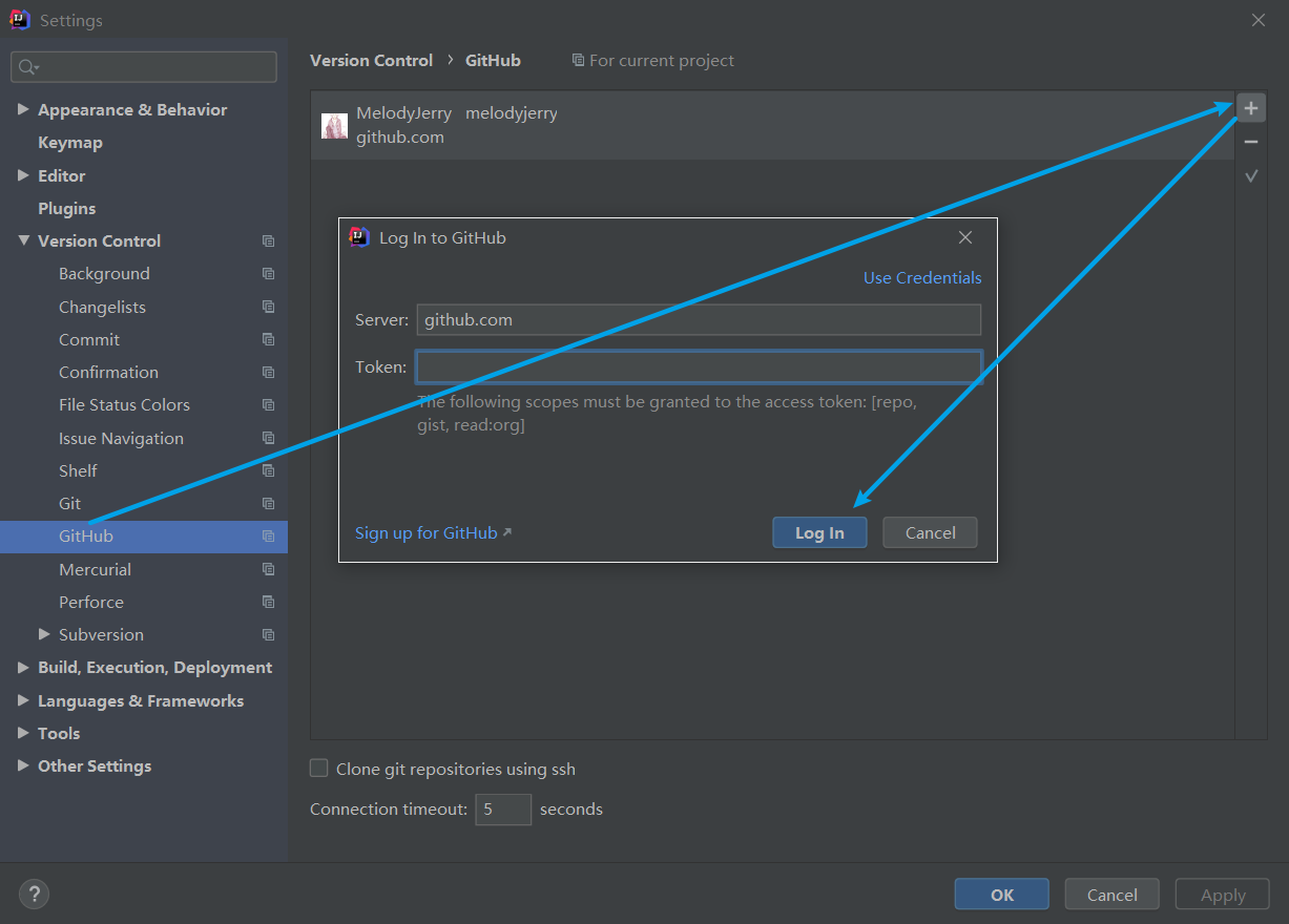在IDEA中设置GitHub,File– >Setting->Version Control–>GibHub