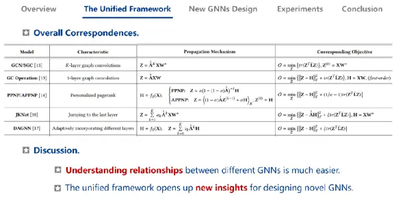 另一方面,我们可以继续深入探讨,这个框架不仅能够帮助我们更深入地理解不同图神经网络之间的关系,同时也为设计新的图神经网络提供了新的思路。这也是我们希望带给大家的另一个重要的视角:通过构建一个统一的优化目标框架,我们不仅能够更深入地理解现有图神经网络之间的关系,还能够为设计新的图神经网络提供新的思路。