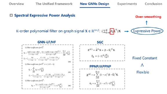 这些可能源自或借鉴了谱域的一些信息或概念。一些研究指出,在图神经网络的谱域,其表达能力与过平滑问题存在直接关联。具体而言,该图神经网络所对应的多项式滤波器的表达能力越强,其缓解过平滑的能力也越强。