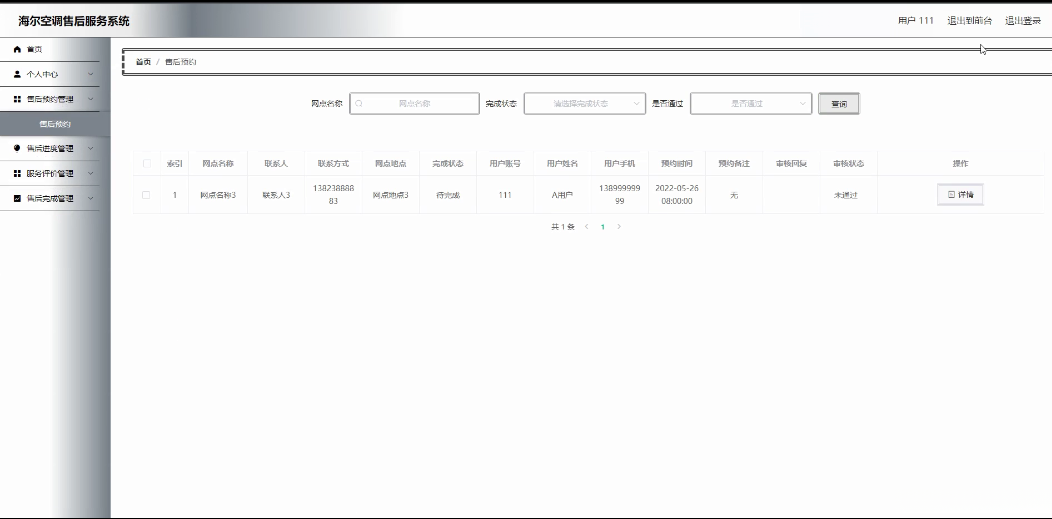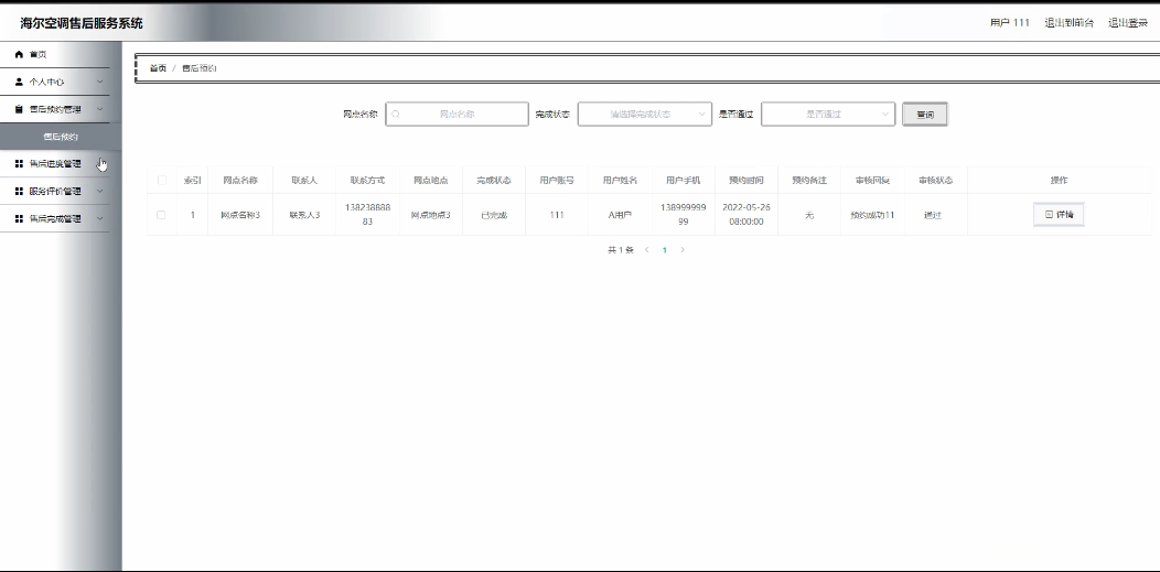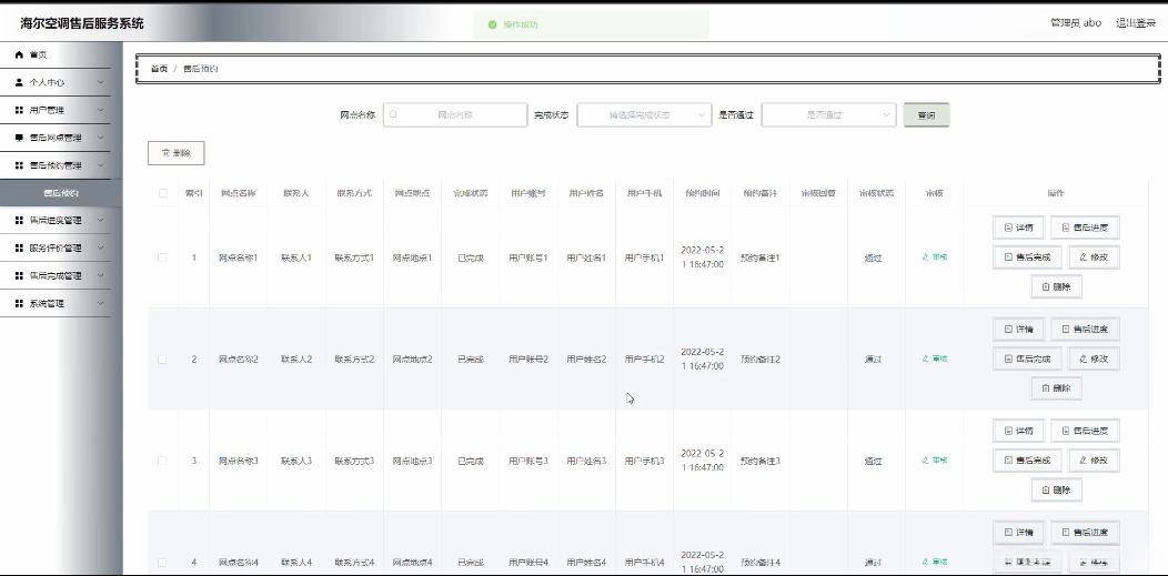 售后预约 :用户可以通过系统提交售后预约申请,包括选择售后网点、预约时间、描述故障情况等。系统会根据预约情况自动或手动分配维修任务给相应的售后网点。