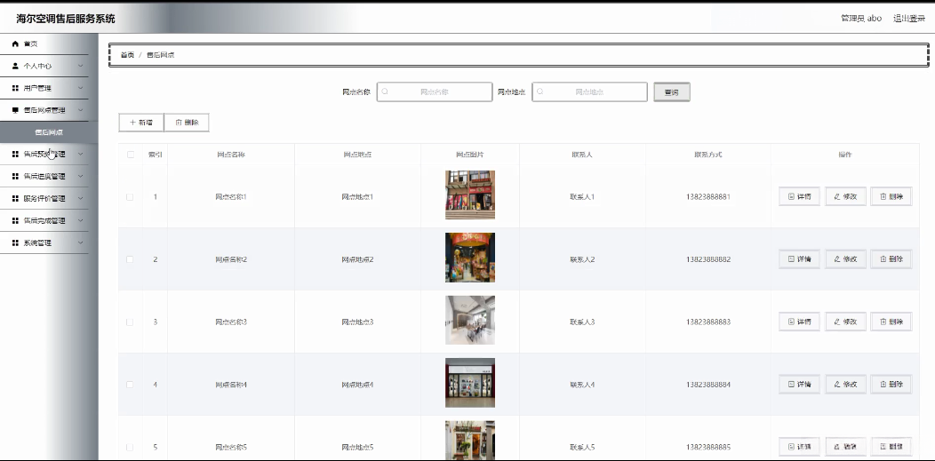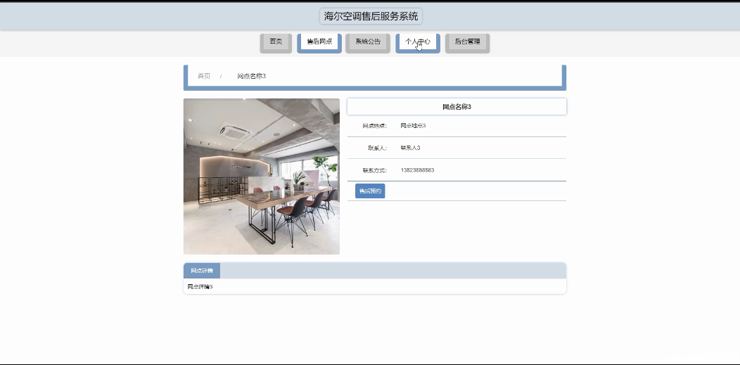 售后网点管理 :系统整合海尔空调在全国范围内的售后网点信息,包括网点位置、服务范围、联系方式等。用户可以根据所在地区选择最近的售后网点进行预约。