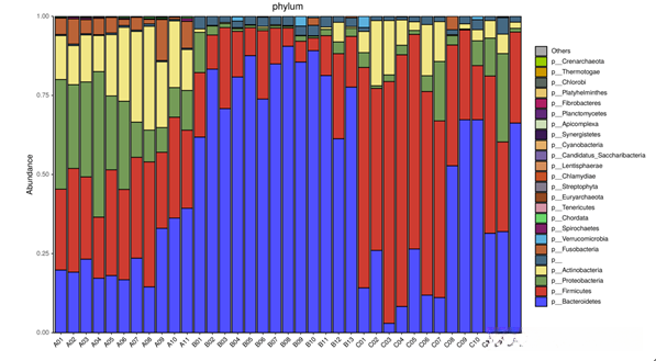 注:横坐标为样本,纵坐标为各级别的相对丰度;其它级别的图请在下面目录查看。