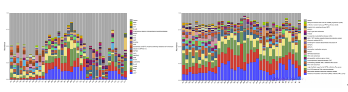 抗性基因统计(Best_Hit_ARO左) (AMR_Gene_Family 右)