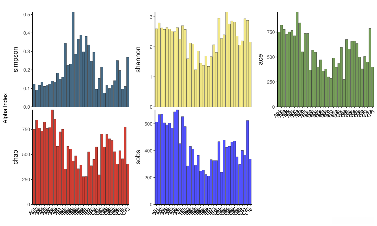 shannon 指数以及 simpson 指数反映群落的多样性( speciesdiversity),受样品群落中物种丰富度( speciesrichness)和物种均匀度( speciesevenness)的影响。