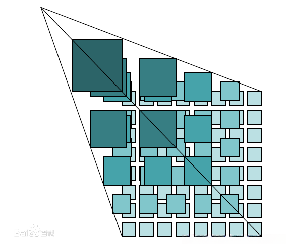 使用互联网地图时,我们看到的是一张铺满整个屏幕的大的地图图片。实际上,这张大的图片是多个尺寸相同(通常是256*256像素)的小图片按照既定规则无缝拼接而成的,这些小图片就是瓦片。瓦片按照如下图所示的金字塔结构组织,每张瓦片都可通过级别、行列号唯一标记。在平移地图、缩放地图时,浏览器根据金字塔规则,计算出所需的瓦片,从瓦片服务器获取并拼接。