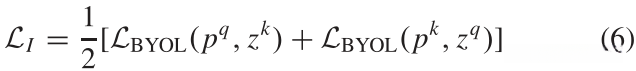 1)实例对比: 实例对比分支 与标准 BYOL [18] 学习流程相同。具体来说,对于 (1) 和 (2) 中的嵌入向量 zq、zk,我们将它们输入到常规 MLP 预测器中,该预测器输出预测 pq、pk。最后,我们计算 实例对比损失 。