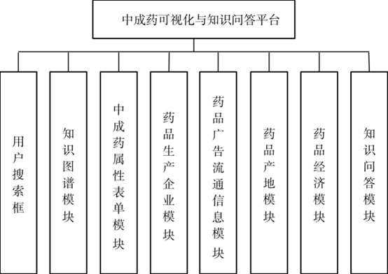 该中成药可视化与知识问答平台主要包含8个功能模块,具体信息可参考图2。用户可在搜索框录入中成药名称,触发搜索后,平台将自动呈现相关信息。