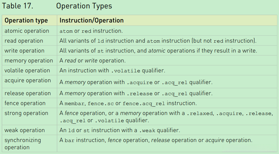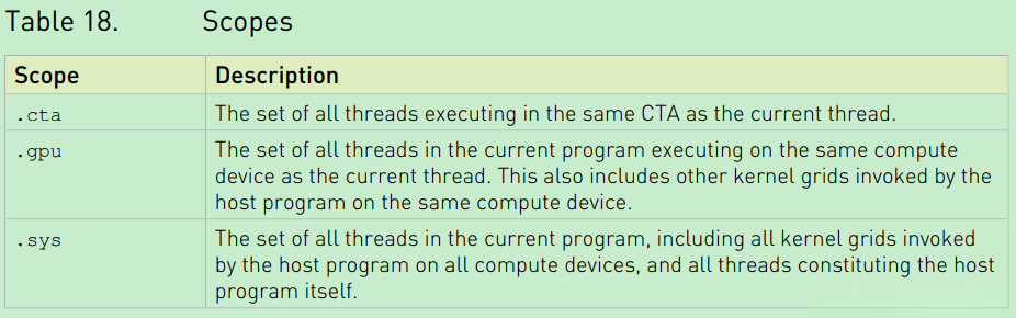 - 在同一个屏障下进行的bar-sync、bar-red或bar$arrive的动作与其在该屏障上同时进行的bar-sync或bar-red的动作相互协调。