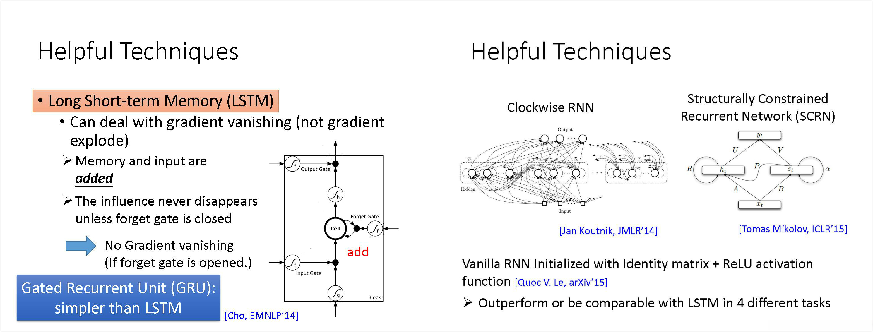 其它处理gradient descent的技巧还有clockwise RNN, SCRN……