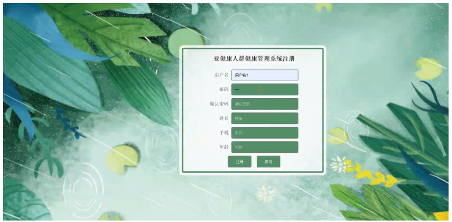 用户注册,在注册页面通过填写用户名、密码、确认密码、姓名、手机、年龄等信息,进行注册,如图5-8所示。