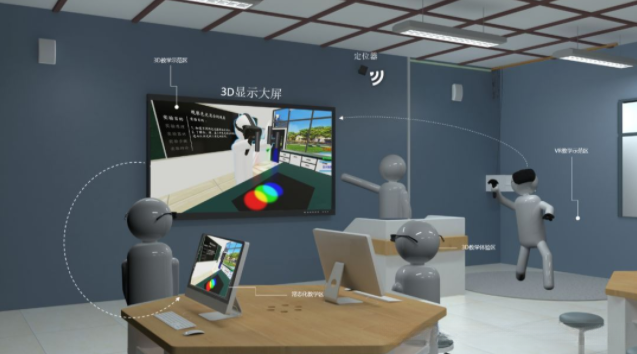 VR教室通过软硬件平台为师生提供了内容丰富的教学资源数据包,利用VR技术为学生打造互动、有趣的学习情境,通过自身对知识的探索,激发对学习兴趣,加速对知识的理解。