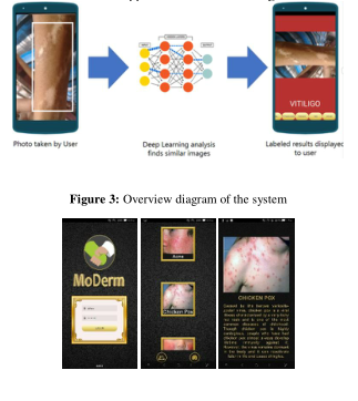 开发一款通过卷积神经网络深度学习识别皮肤病的Android智能手机应用程序有三个主要过程。这是对皮肤病变的捕捉,深度学习分析,并显示结果,如图3所示,应用程序的图形用户界面如图4所示。