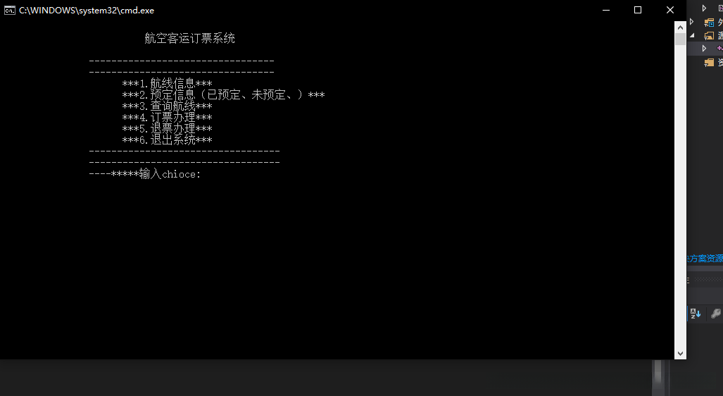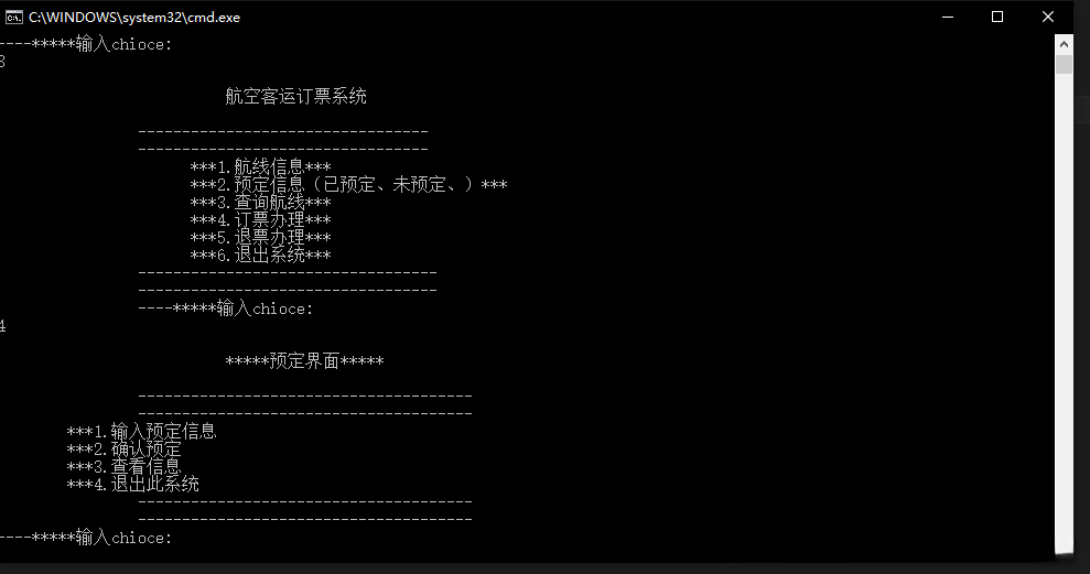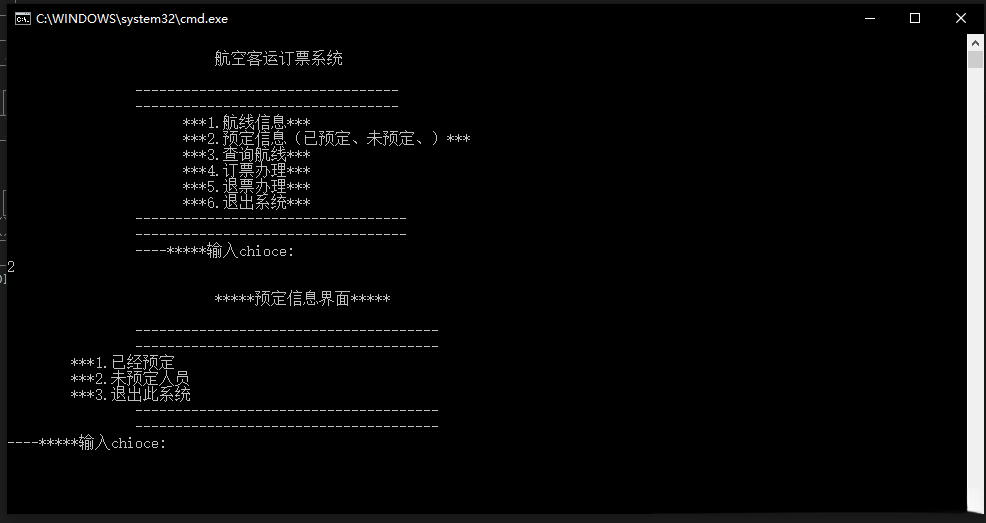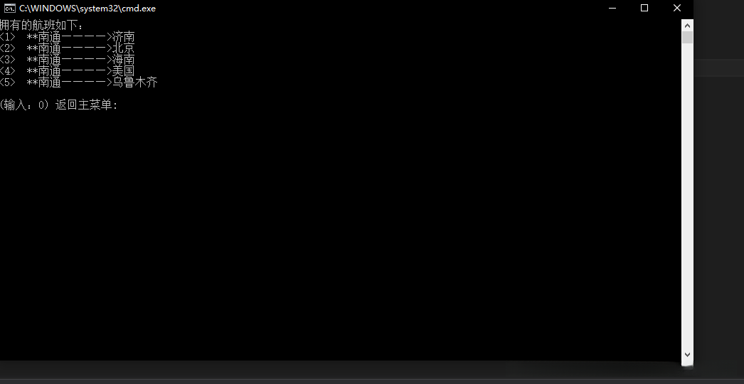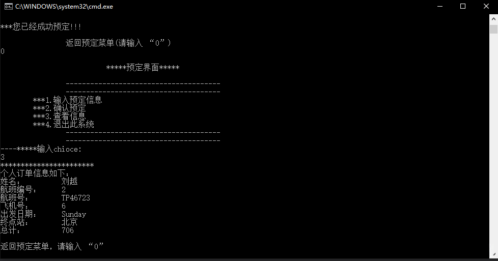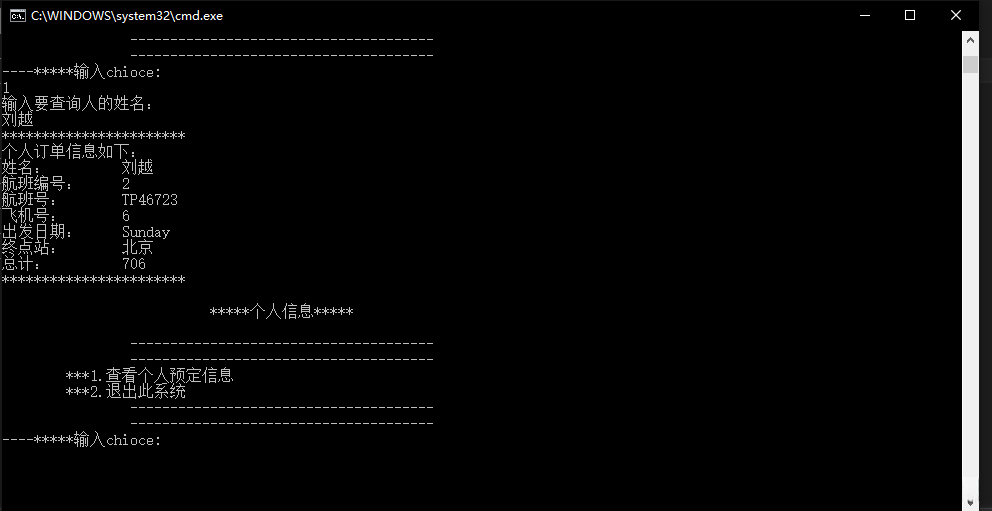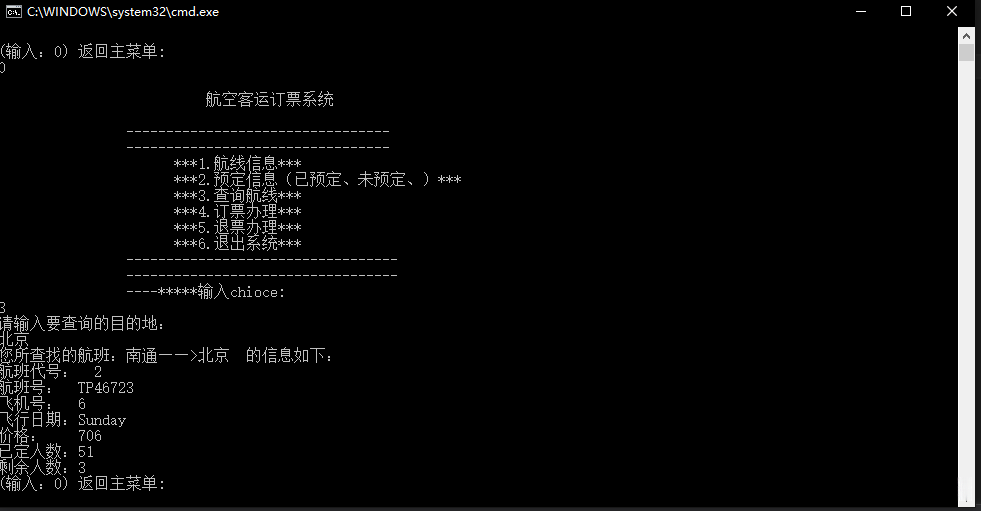 运行结果如上:可以发现预定航线里面剩余票量有变化;
