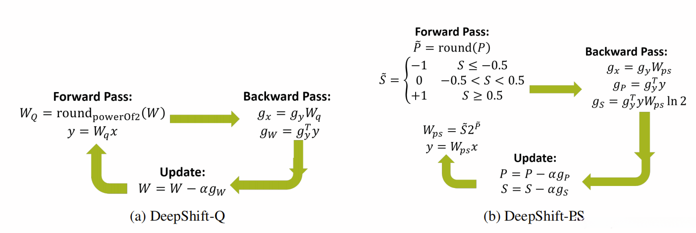 另一方面,DeepShift-PS直接使用shift P和符号翻转S作为可训练参数:
