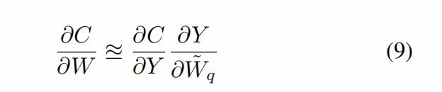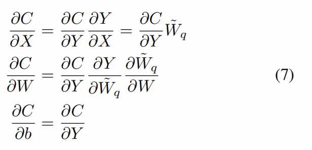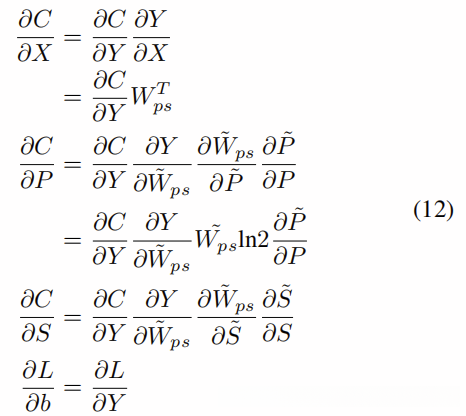 都为零。这意味着W在反向传播期间无法进行参数更新而导致无法进行学习或参数更新的问题。为此我们采用直通估算器(STE)[17]来解决这一问题。