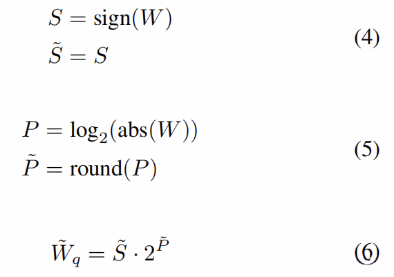 DeepShift-Q方法在训练时采用了与权重W相关的线性或卷积运算的标准训练方式;然而,在权值矩阵的正传与逆传过程中的每个元素都会被近似量化为最接近的幂次形式。