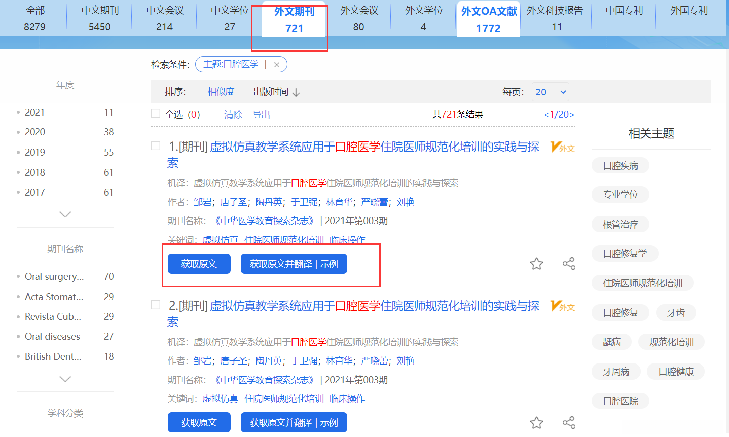然后点外文期刊,就可以看到和口腔医学相关的论文