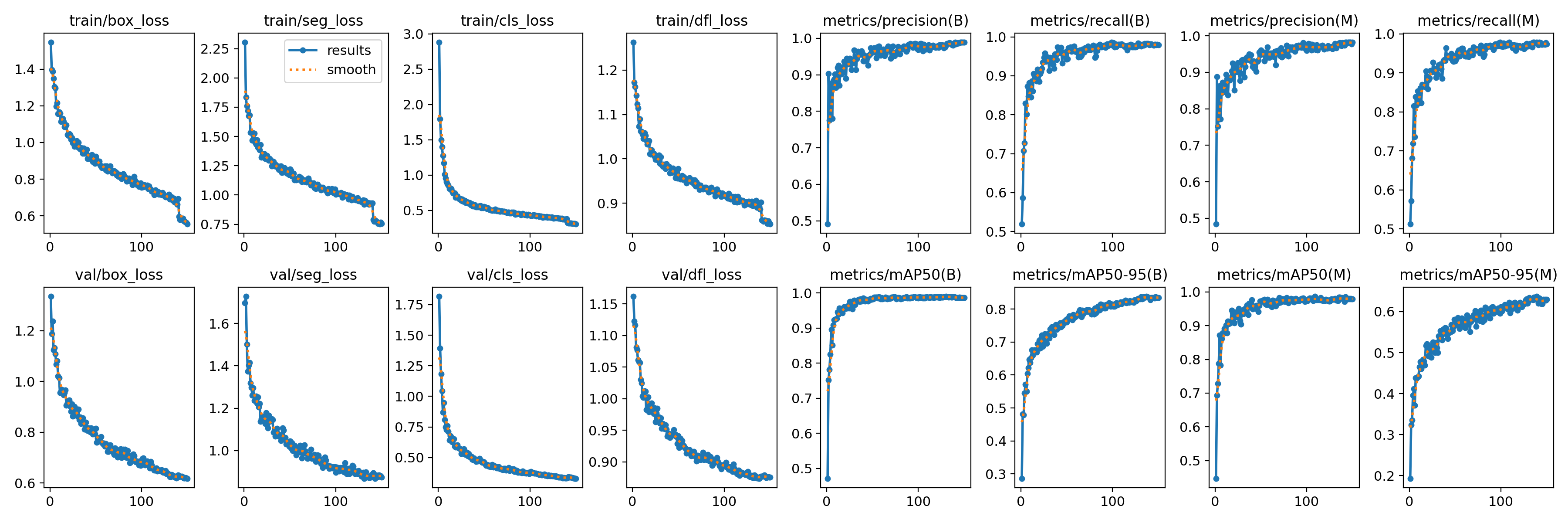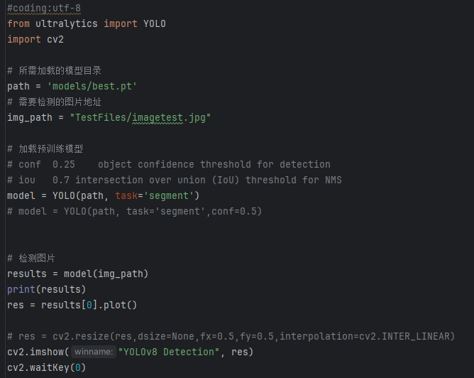 (1)path: 加载预训练的YOLOv8分割模型(best.pt)。