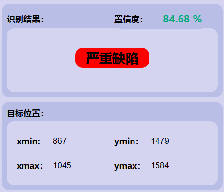 (1)这表示模型对检测到的目标属于“芯片引脚损坏”类别的置信度为84.68%。