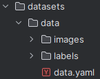 图片数据的存放格式如下,在项目目录中新建datasets目录,同时将检测的图片分为训练集与验证集放入datasets目录下。