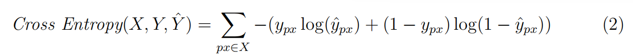 语义分割的任务是预测单个像素,无论它们是代表一个感兴趣的点,还是仅仅是背景的一部分。因此,这个问题最终简化为像素级二值分类问题 。因此,作为网络的损失函数,我们简单地取二进制交叉熵函数并将其最小化。