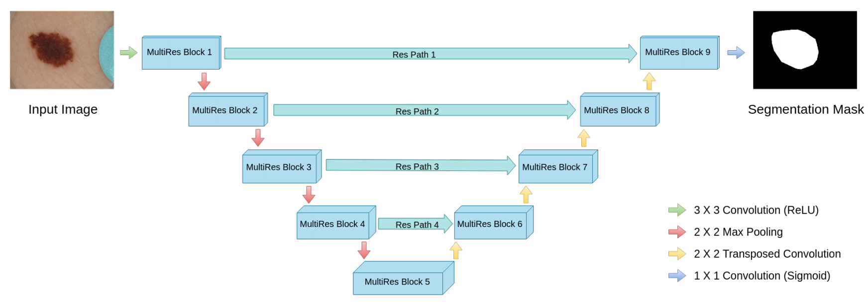 - 基于可能的改进范围,我们提出了MultiResUNet,这是标准U-Net架构的一个增强版本。