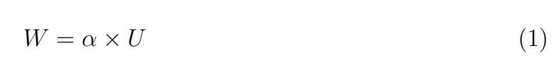 这里,U是U-Net相应层中的滤波器数,α是一个标量系数(即按比例α取原始U-Net中的滤波器数)。将W分解为U和α提供了一种方便的方法来控制参数的数量和保持它们与U-Net的可比性。