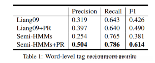 在Liang等人的原始模型中,垃圾收集问题 是严重的,这意味着大多数单词错误地与应该保持不对齐的不频繁字段对齐(i.e, aligned to null) 。在这里,我们结合了Graca等人提出的后验正则化 ,它可以在具有潜在变量的模型中添加约束,同时保持模型易于处理。在实践中,我们设置了未对齐单词数量的下限 ,这可以显着减轻垃圾收集问题。