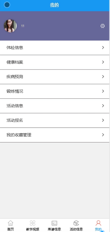 主要包含以下功能模块:完成个人信息设置(个人中心)、实现人员信息维护(用户管理)、基于当前时间段实时更新的知识讲座列表(知识讲座管理和实时更新)、制定个人健康体检计划(体检信息管理和健康档案维护)、记录个人健康数据(健康档案管理和疾病预测分析)、制定合理的运动计划(锻炼情况分析与运动方案设计)、实现教学视频资源的分类整理(教学视频管理和视频类型归类)、优化视频播放体验(视频类型优化与播放界面设计)以及提供个性化的饮食搭配方案(菜谱信息管理和菜谱分类规划)。另外还包括日常事务性工作处理(如活动信息查询与活动报名统计)以及基础数据维护工作(如课程表安排与知识点更新)。