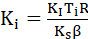 根据"电子最佳调节理论"中提出的"二阶最佳系统"概念,在确定比例放大系数 Ki 时;其取值由系统的动态性能指标所决定;从而得出其结果为 Ki = Ti;Pi 调节器的积分时间常数 Ti 与比例放大系数 Ki 的关系式即为:K_i = T_i