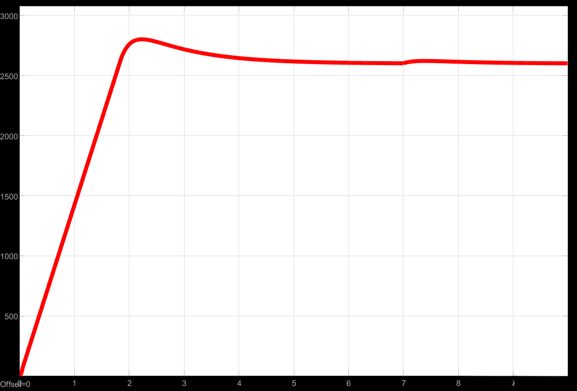根据"内外环调节原则",在每一个闭环控制器中依次进行参数整定时,则应先对比例系数Kp进行优化设置后继动作安排,在此基础之上再对积分系数Ki进行微调处理。这样既能保证系统响应速度不受影响又能在稳态特性上有明显提升。在初始调校阶段采用连续信号作为输入源来进行系统性能测试,在初步整定参数后发现这套双闭环电机调速系统能够满足设计要求即其超调量控制在5%以内且达到了无差速调性能指标。