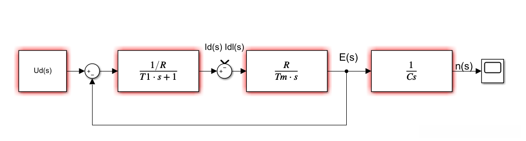 在转速调节器的设计中可将现成设计好的电流环设为转速环的控制对象。通过这一方法获得转速环的动力学结构图后,在实现无净差的速度跟踪目标下,并增强系统在外界干扰下的动态抗扰能力的同时,将其速度调节机构定型为典型的II型系统其传递函数形式则为