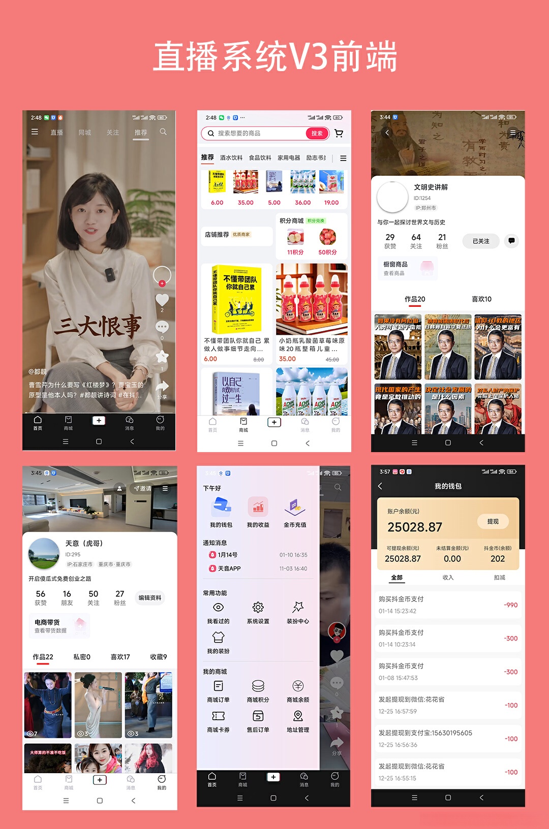 2025版短视频源码|长视频|直播|商城带货直播带货礼物打赏仿抖音