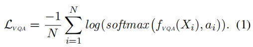 (1)答案投影:传统VQA模型学习策略使用softmax交叉熵对标准分类任务进行优化: