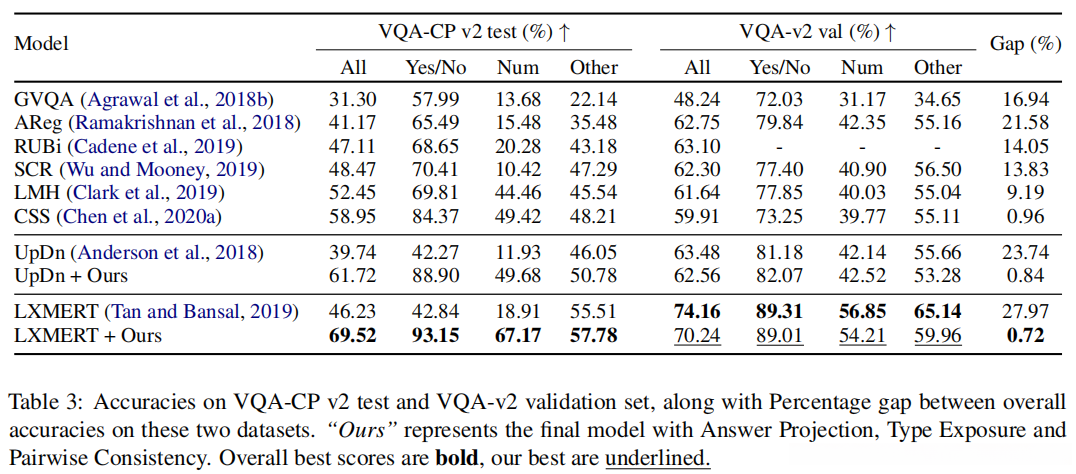 4.3 在VQA-CP-v2和VQA-v2上的结果