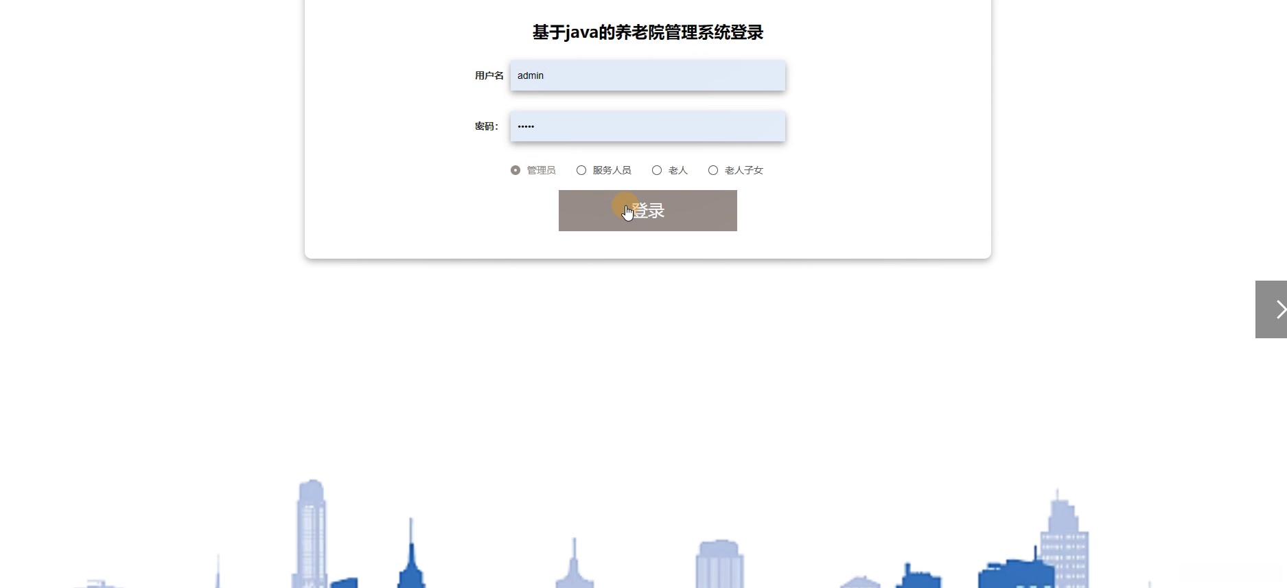 管理员登录,通过登录页面填写用户名、密码、角色,点击登录,如图5-5所示。