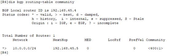 R5通告10.0.X.0/24,将传递给AS300的路由10.0.0.0/24标记community为400.1
