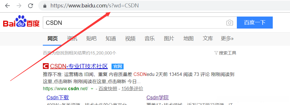 我们来观察一下百度搜索是怎么提交关键字的