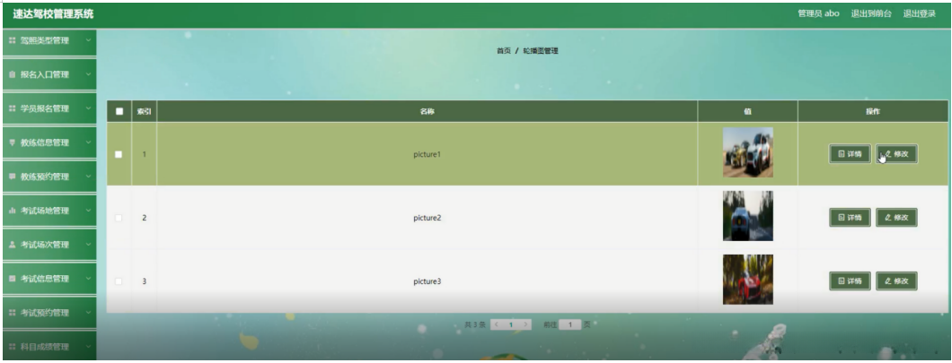 选题背景:伴随着社会的进步与人民生活水平的不断提升,在这个快速发展的时代中, 人们对自身发展要求越来越高, 因此, 许多人都选择学习驾驶技术以提升自身能力。与此同时, 驾校作为一种重要的职业培训机构, 不仅肩负着培养高素质专业人才的重要职责, 而且是推动行业发展的关键力量。但是, 现阶段传统驾校管理模式存在诸多不足之处: 如管理不够透明化, 操作流程过于复杂以及工作效率较低等方面的问题亟待改进。基于此, 开发出一套高效便捷且智能化的驾驶学校管理系统势在必行。