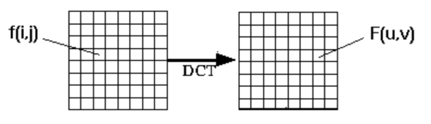 把图片从空域转换到频域,我们需要使用DCT(二维离散余弦变换)。DCT也是JPEG以及H264压缩算法的核心部分,感兴趣的可以继续深入了解视频压缩算法的相关研究。