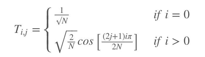 DCT由如下的公式定义,N和M为矩阵的行数和列数