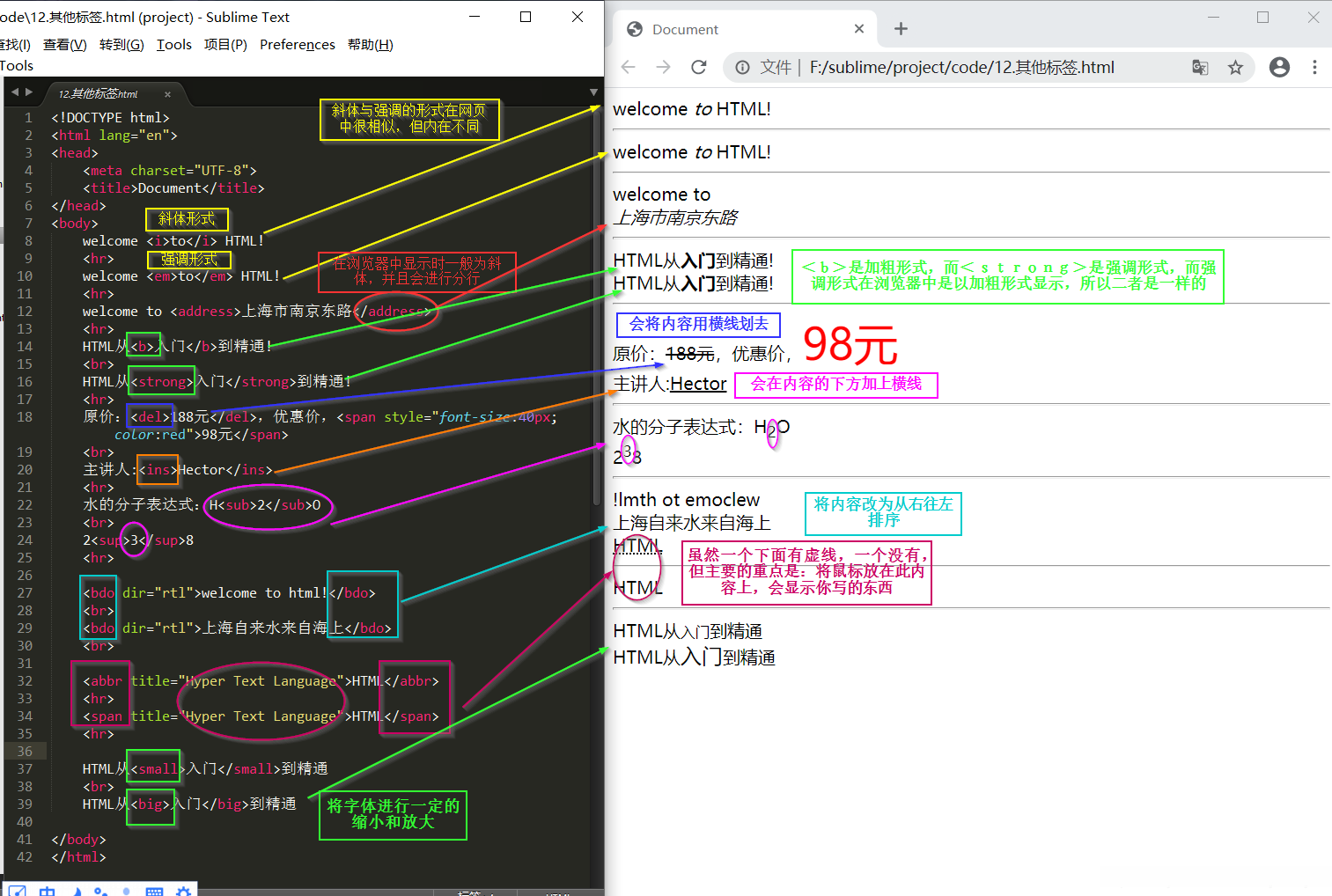 实体字符也称为特殊字符,用于显示一些特殊符号:如< > & 空格等