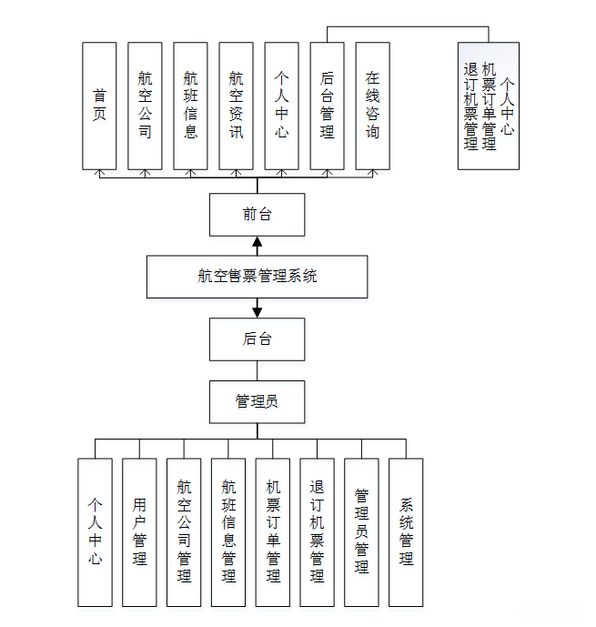 为更好地梳理本系统整体思路,并采用结构图形式进行表达,在此基础上对航空售票系统的功能架构进行设计与实现。