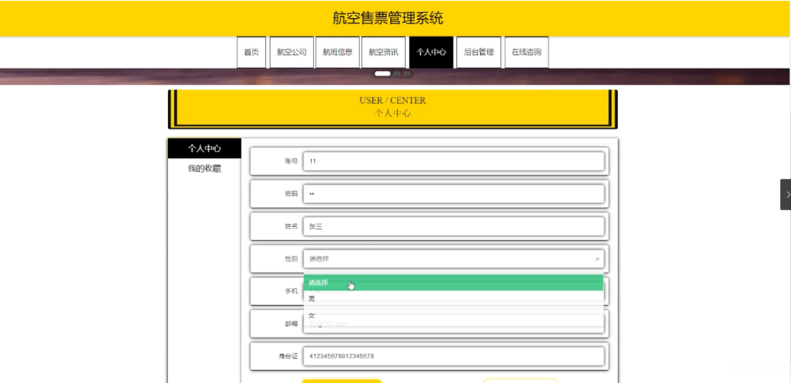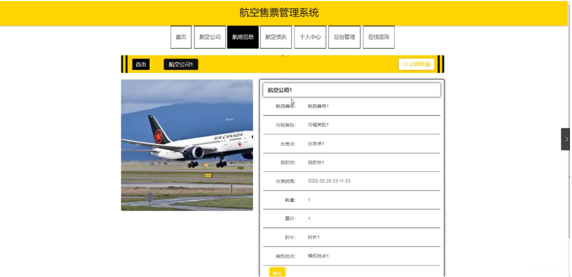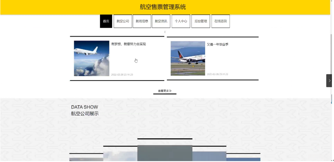 用户登录后进入系统会发现核心功能区涵盖首页、航空公司、航班信息、航空资讯、个人中心等多个区域,并包含后台管理与在线咨询等功能项。其典型操作路径示意图如图3-2所示。