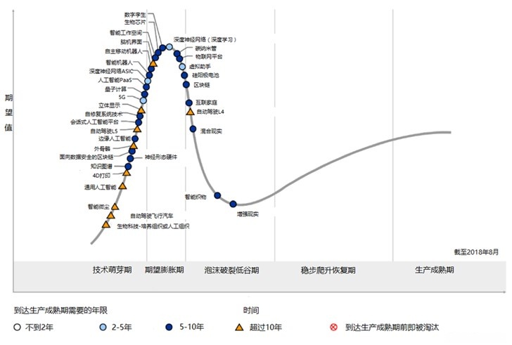 2018新兴技术成熟度曲线(来源:Gartner 2018年8月)
