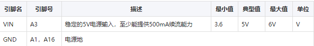 NB260有两种方式供电:一种是稳定的5V电压供电,另外一种是电池直接供电。当使用VIN供电时,VCC引脚为3.3V输出,不能再接到电池两端。